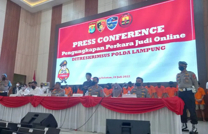 Bandarlampung – Dua selebgram dan 25 admin pengendali tiga situs judi online yang ditangkal Polda Lampung terancam kurungan penjara selama enam tahun.