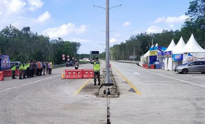 Terlihat juga puluhan petugas gabungan sedang mengatur lalu lintas atau pun bersiaga di pintu tol Simpang Pematang, Mesuji. (Ant)