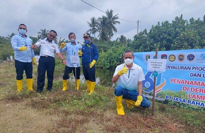 Jasa Raharja Cabang Lampung Tanam Pohon Mangrove di Dermaga Sebalang