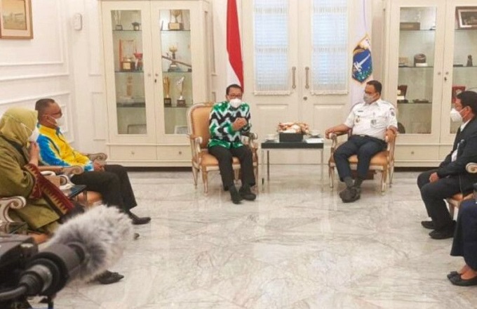 Kunjungan Wahdi yang didampingi Ketua Dekranasda Silfia Naharani Wahdi dan Kadis Kominfo Subehi ini diterima oleh Gubernur DKI Jakarta Anies Rasyid Baswedan.