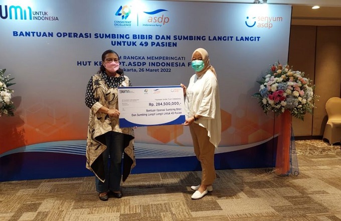 Shelvy mengatakan, pada momentum HUT ke-49 ASDP terus hadir semakin dekat dan memberikan kontribusi positif bagi masyarakat Indonesia, khususnya membantu mengembalikan senyum anak-anak Indonesia, yang mengalami kondisi sumbing bibir dan sumbing langit-langit mulut sejak usia dini.